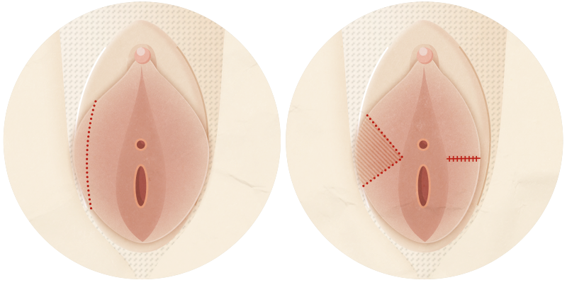 L’intervention chirurgicale ou nymphoplastie a pour but la réduction de la taille des petites lèvres, la correction d’une éventuelle asymétrie majeure, et s’il y a lieu, la réduction des prolongements antérieurs de chaque côté du clitoris afin d’obtenir une vulve harmonieuse